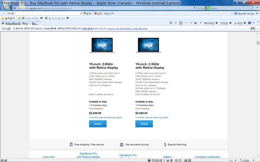 15인치 고급형 입니다. 원래 가격은 2,649 + tax 입니다.
