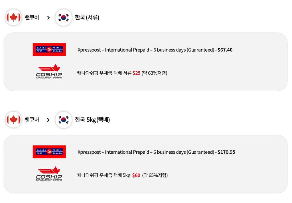 캐나다쉬핑(COSHIP)은 2008년 업계최초 이민가방 단위로