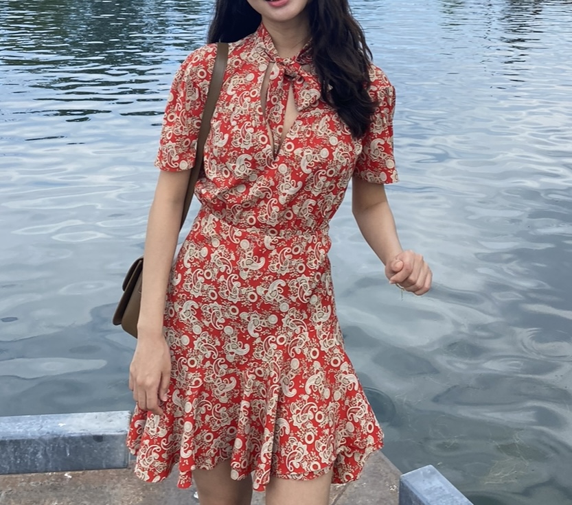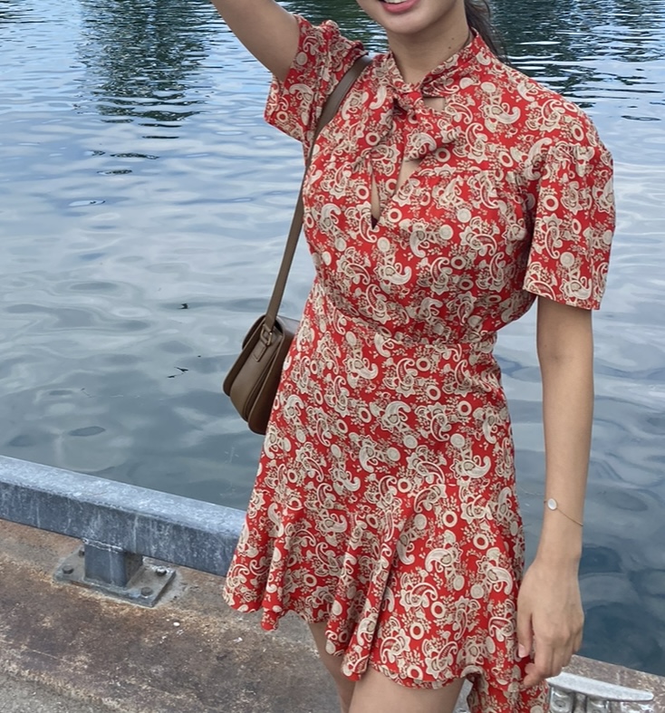 ㅤㅤ5. 산드로 실크 레드 패턴 원피스 55사이즈 (170불)