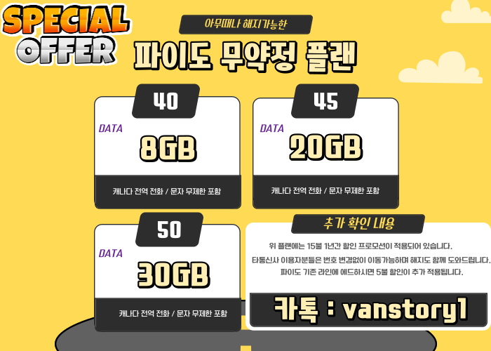 [유료광고]파이도 무약정 플랜 프로모션!! 45불 20기가 그리고 선착순 무료유심까지 제공! 작성자랍슨파이도|작성시간23.03.04|조회수46 목록 댓글 0 글자크기 작게가 글자크기 크게가 ㅤㅤㅤㅤㅤㅤㅤㅤㅤㅤ매장 주소 : 1191 Robson st방문전 예약 필수입니다! 카톡 예약 : vanstory1(카톡아이디)ㅤㅤㅤㅤㅤㅤㅤㅤㅤㅤ ㅤㅤㅤㅤㅤㅤ 다음검색 현재 게시글 추가 기능 열기 북마크 공유하기 신고 센터로 신고 댓글 댓글 0 댓글쓰기 답글쓰기 댓글 리스트