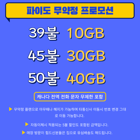 [유료광고]무약정플랜 promo 39불 10기가 45불 30기가 50불 40기가🚨무료유심까지 제공!(선착순한정)