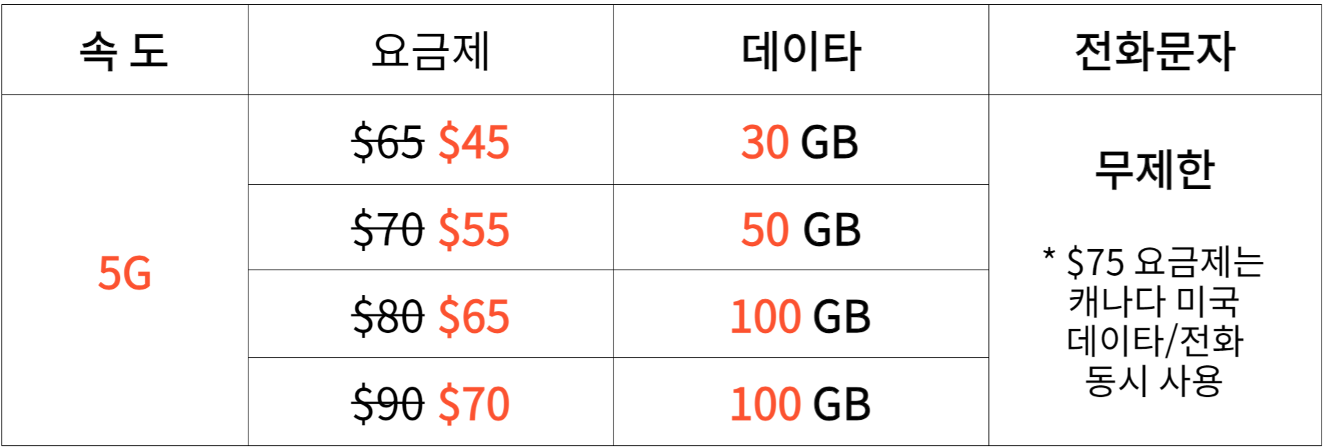 * 월 요금 자동이체로 설정하면 추가 매월 추가 $5 할인