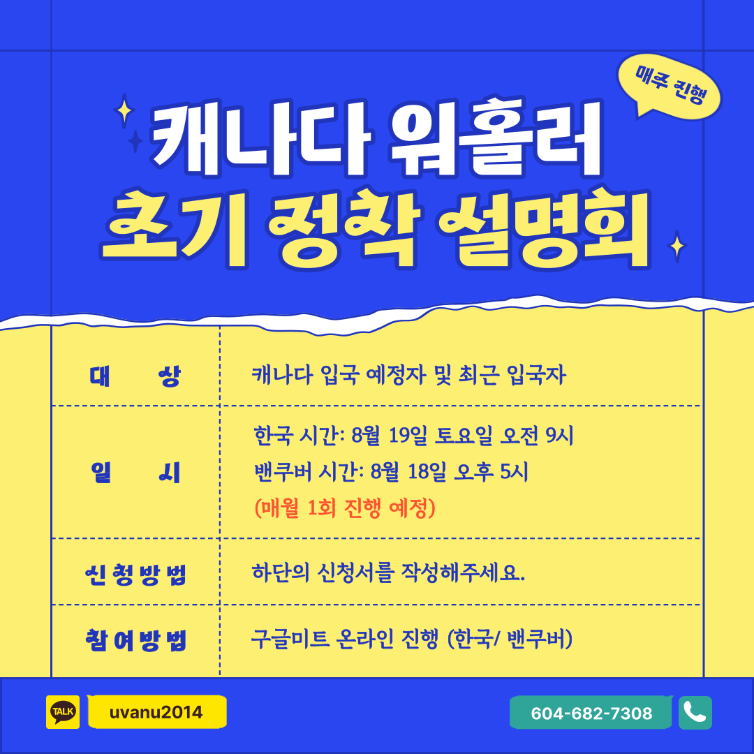 캐나다 초기 정착을 위한 정보패키지 워홀로서기 프로젝트! 벌써 워홀러를 위한 온라인 오리엔테이션이 5회차가 되었습니다!