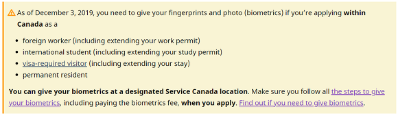 바로 오늘부터 바이오메트릭스를 캐나다 내에서 받을 수 있다는 기쁜 소식이!!