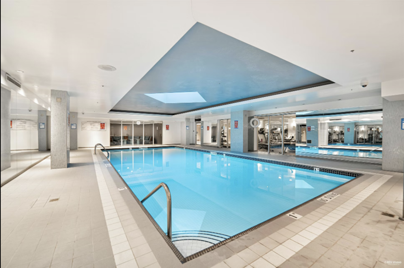 오래 안된 콘도 이고요, 유닛의 크기가 950 sqf으로 매우 커서 넓은 공간으로 이용 가능하십니다. 건물 주변 CCTV와 상주 컨시어지가 있어 보안이 매우 좋고, 아래 사진에서 보시 듯, 넓은 수영장과 헬스장이 있습니다.