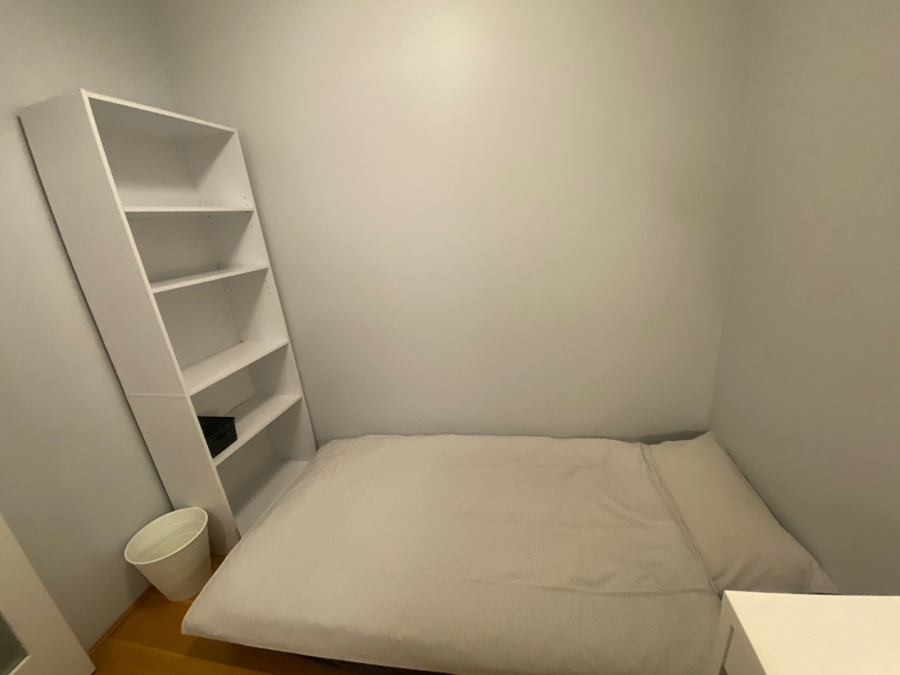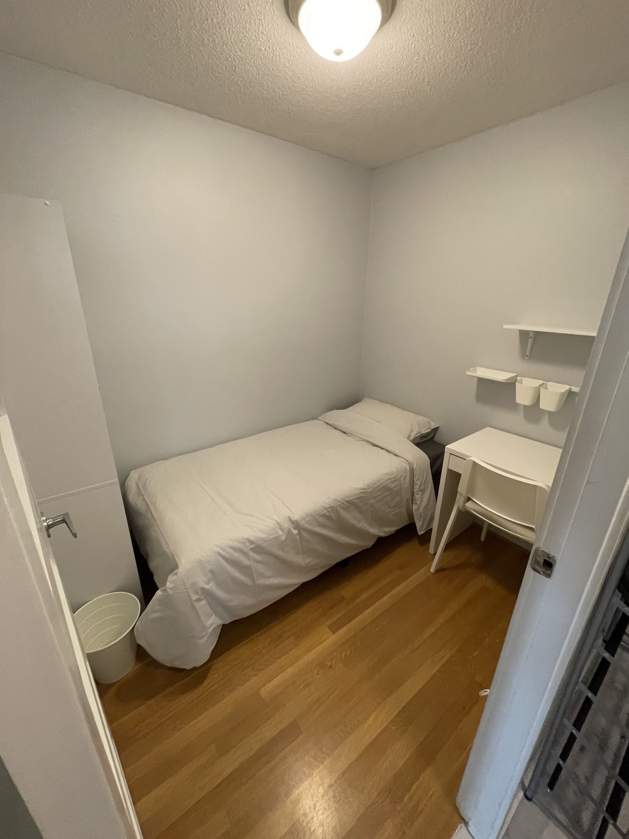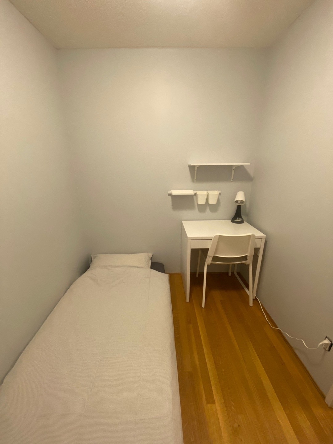 1. 구비품목 : 트윈침대, 이불, 매트리스 커버, 베개, 베개커버, 책상 및 의자, 옷걸이 10개, 쓰레기통, 방문 나오자마자 위치된 붙박이 장