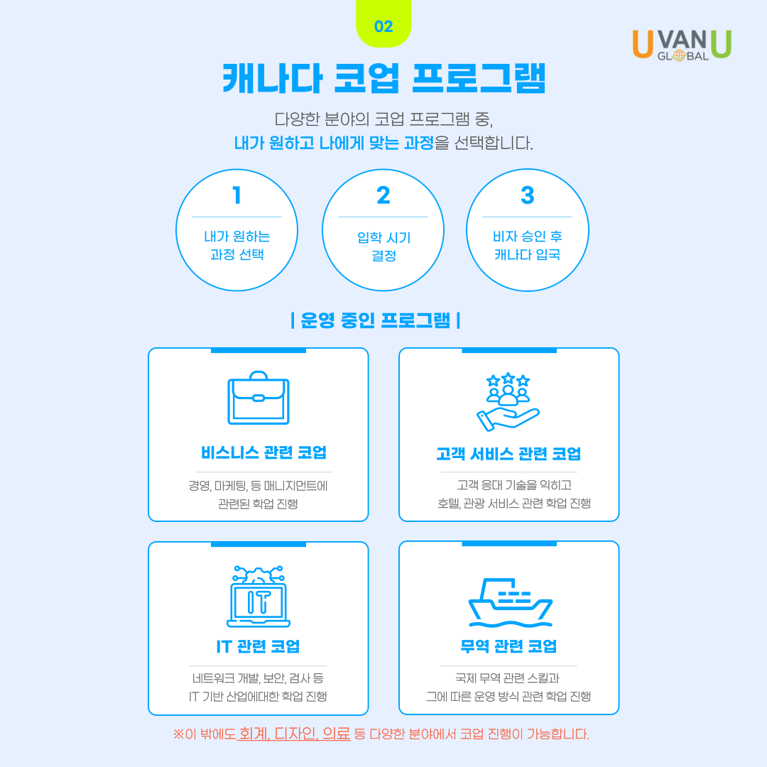 비즈니스, 고객서비스, 무역, IT, 유아교육, 의료, 회계, 디자인 등