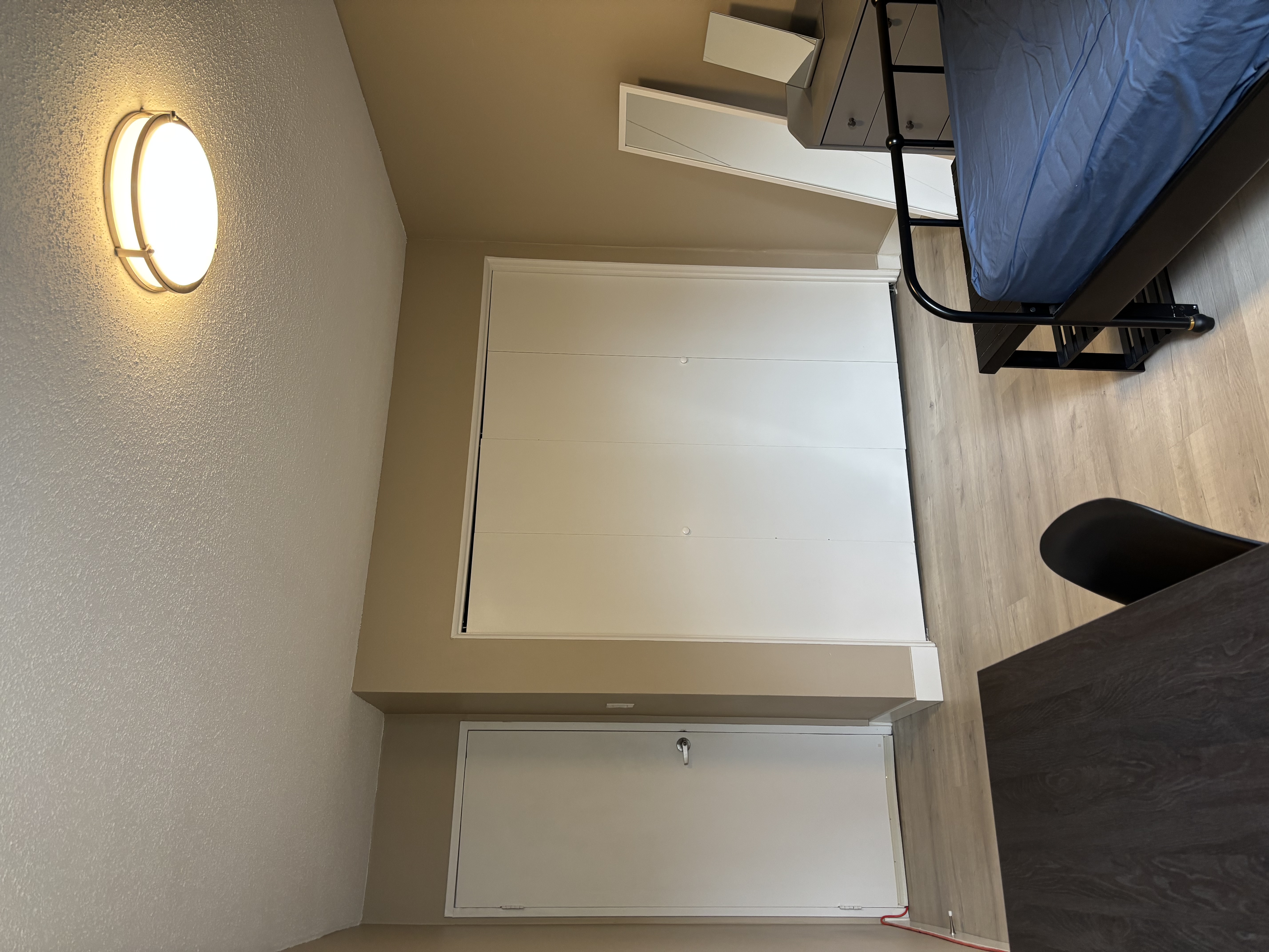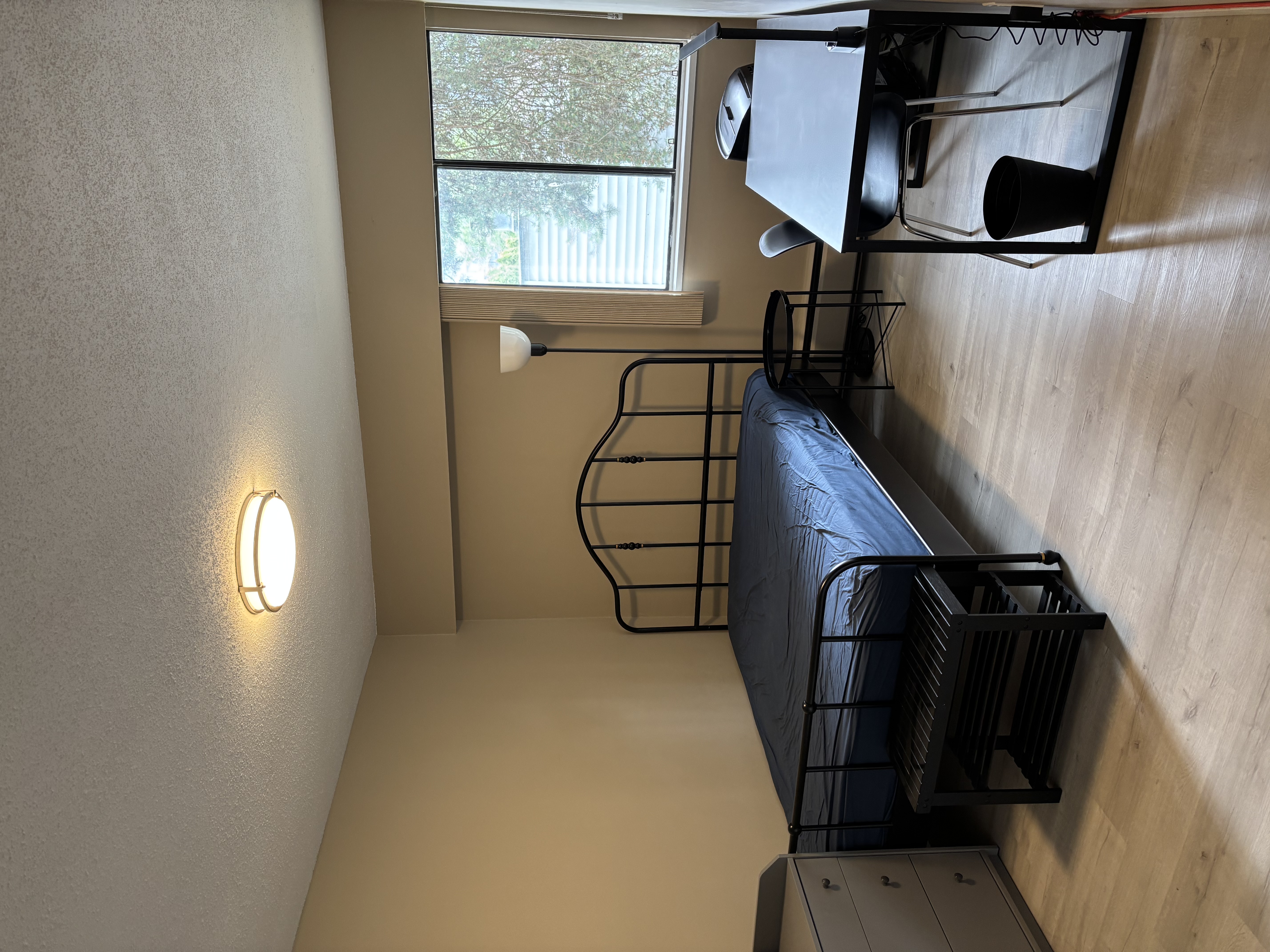 퀸 사이즈 침대, 책상, 옷장 구비되어 있고
