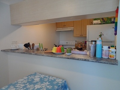 거실이랑 부엌이랑 붙어있는데 중간에 식탁을 하나 놔두었어요