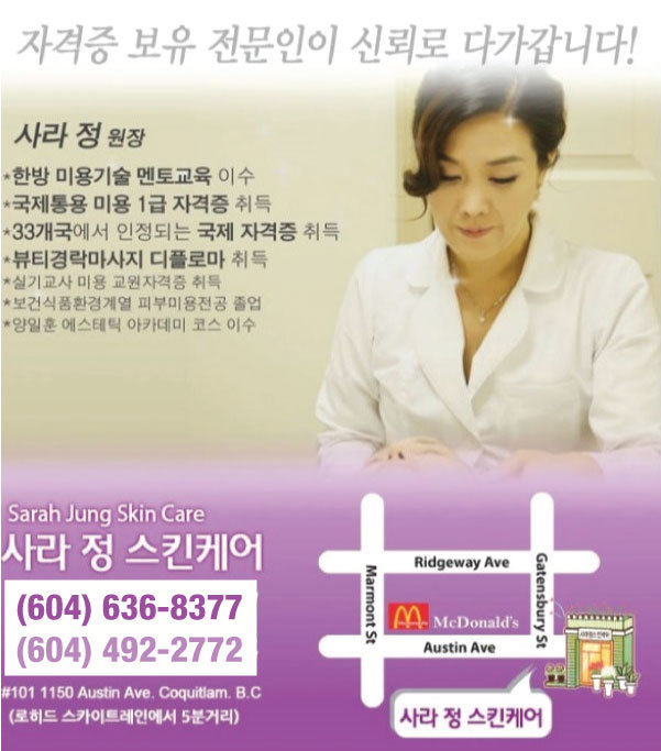 예약은 sarahjungspa@gmail.com혹은 604-636-8377로 해주세요! (우벤유 광고라고 언급해 주세요)