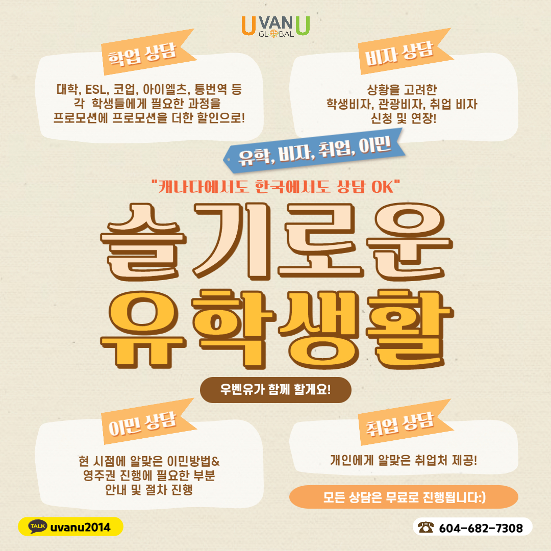캐나다 뿐만 아니라 한국에 계신 분들도 상담 받아보실 수 있습니다.