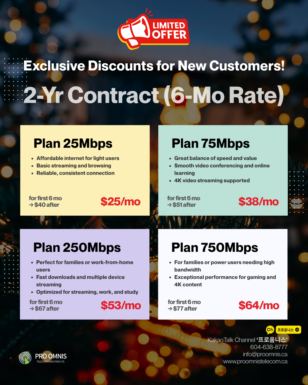 [유료광고]2026년 [인터넷] New Year 프로모션! 최대 6개월 $25부터 ~ / [휴대폰] 메이저 통신사 월 $30부터 ~ 🎉🎉🎉