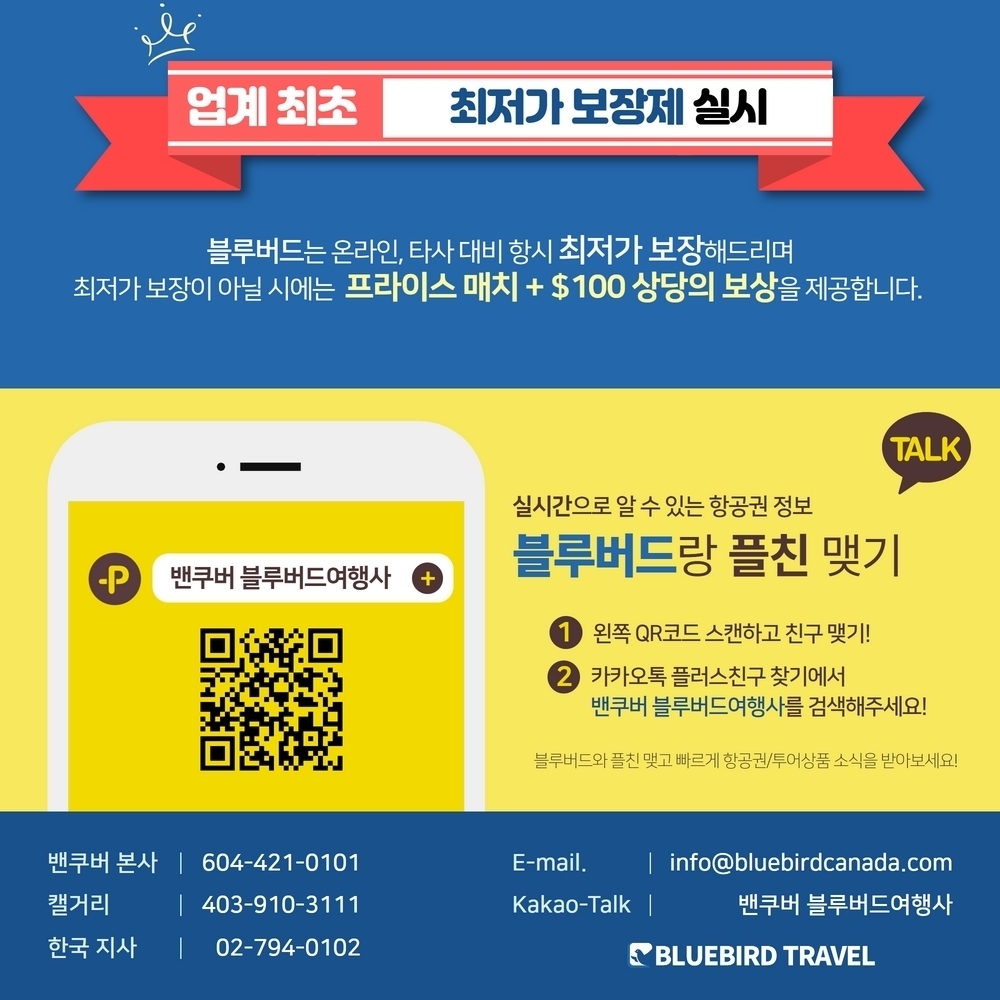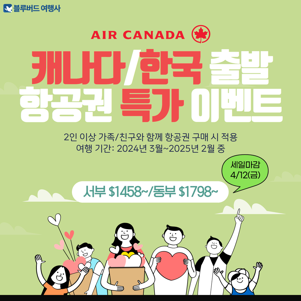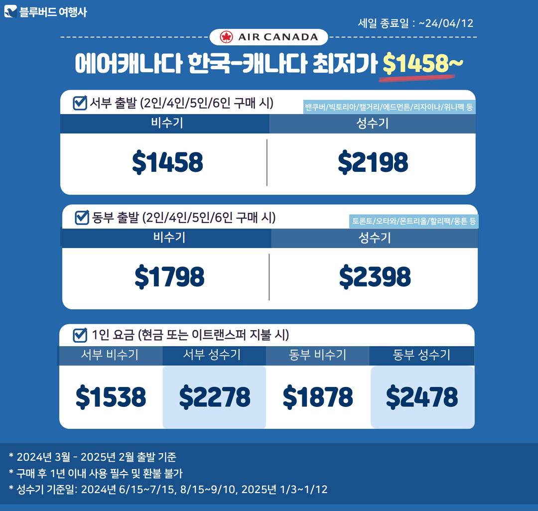 (캐나다 출발 및 한국 출발 모두 동일 금액)