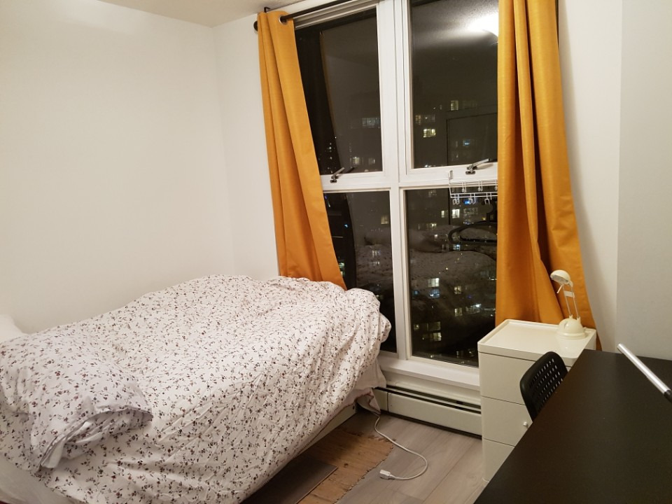 - 더블 사이즈 침대, 책상, 주방도구, 세탁기, 사우나, 실내 수영장, 운동장, 스쿼시장, 라운지/회의실, 야외 BBQ그릴, 24시간 security, 다 포함됩니다.