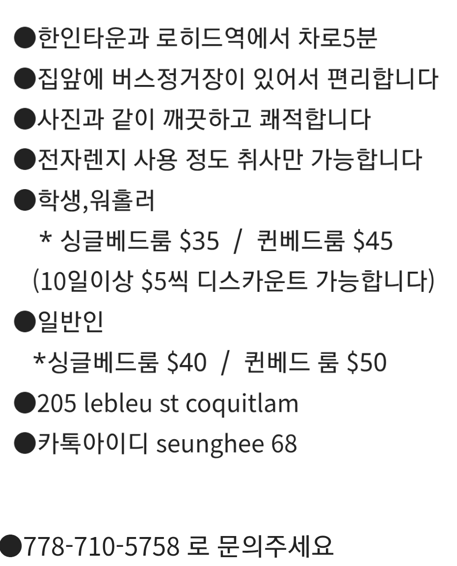 한인타운 단기렌트 1박 $30부터 (도미토리 아닙니다) 작성자Seunghee|작성시간25.08.17|조회수62 목록 댓글 0 글자크기 작게가 글자크기 크게가 다음검색 현재 게시글 추가 기능 열기 북마크 공유하기 신고 센터로 신고 댓글 댓글 0 댓글쓰기 답글쓰기 댓글 리스트