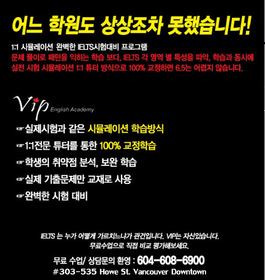 ++영주권/대학준비 아이엘츠 1:1집중튜터링 실전연습, 원하는 시간 골라 필요한만큼만 공부한다~!++ 무료트라이얼 문의환영^^ 작성자willhis|작성시간17.05.25|조회수37 목록 댓글 0 글자크기 작게가 글자크기 크게가 카톡문의: vipenglish 다음검색 현재 게시글 추가 기능 열기 북마크 공유하기 신고 센터로 신고 댓글 댓글 0 댓글쓰기 답글쓰기 댓글 리스트
