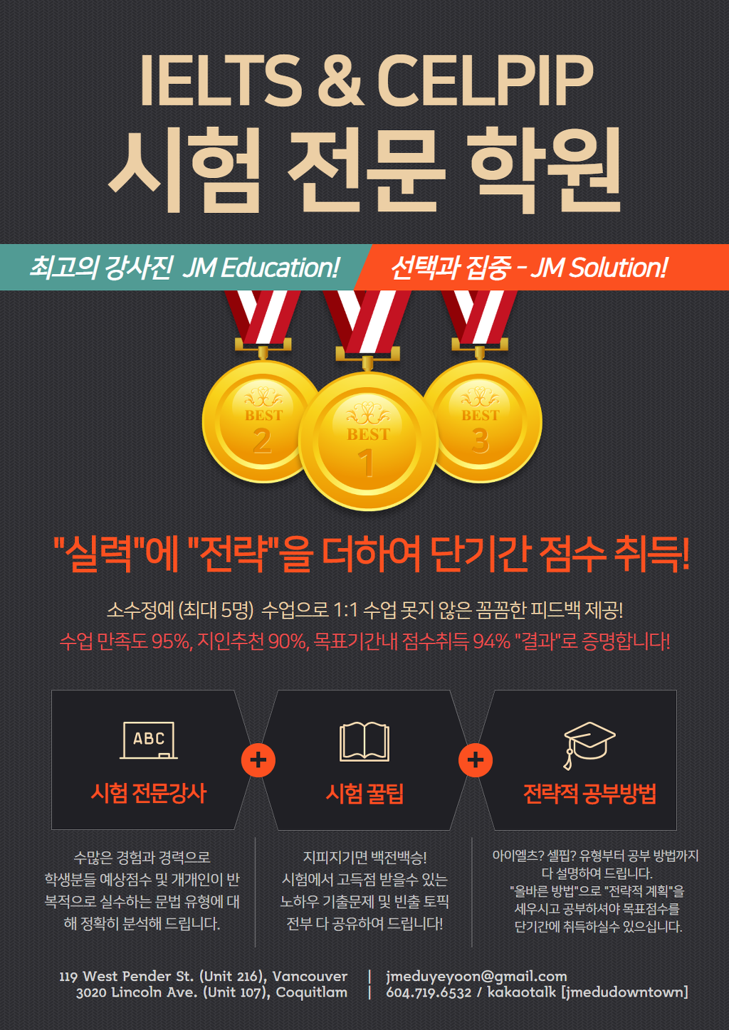 [λ±λ‘λ¬Έμ] JM Education λ€μ΄νμ΄ μΊ νΌμ€ | (Unit 216) 119 West Pender St, Vancouver μ½ν΄νλμΌν° μΊ νΌμ€ | (Unit 107) 3020 Lincoln Ave, Coquitlam Email: jmeduyeyoon@gmail.com Tel: 604.719.6532 [λ€μ΄νμ΄] / 604.789.6532 [μ½ν΄μΌν°] Kakao: jmedudowntown [λ€μ΄νμ΄] / jmeducation [μ½ν΄μΌν°] Instagram: jmedu_official / jmedu_center |