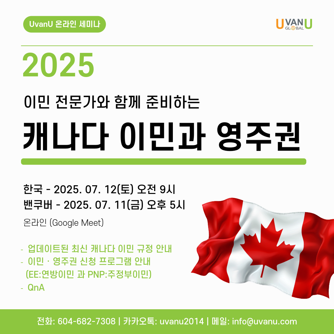 전화: 604-682-7308 | 카톡: uvanu2014 | 사무실: 609 W Hastings St, 402호 (워터프론트역 도보 3분)