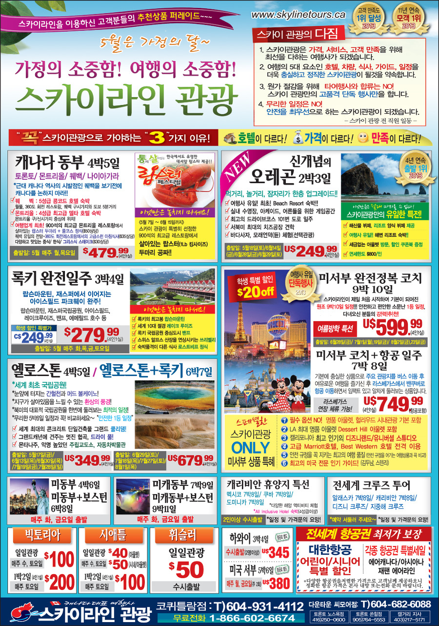 이 외에 www.skylinetours.ca 에서 다양한 상품들을 확인하실수 있습니다.