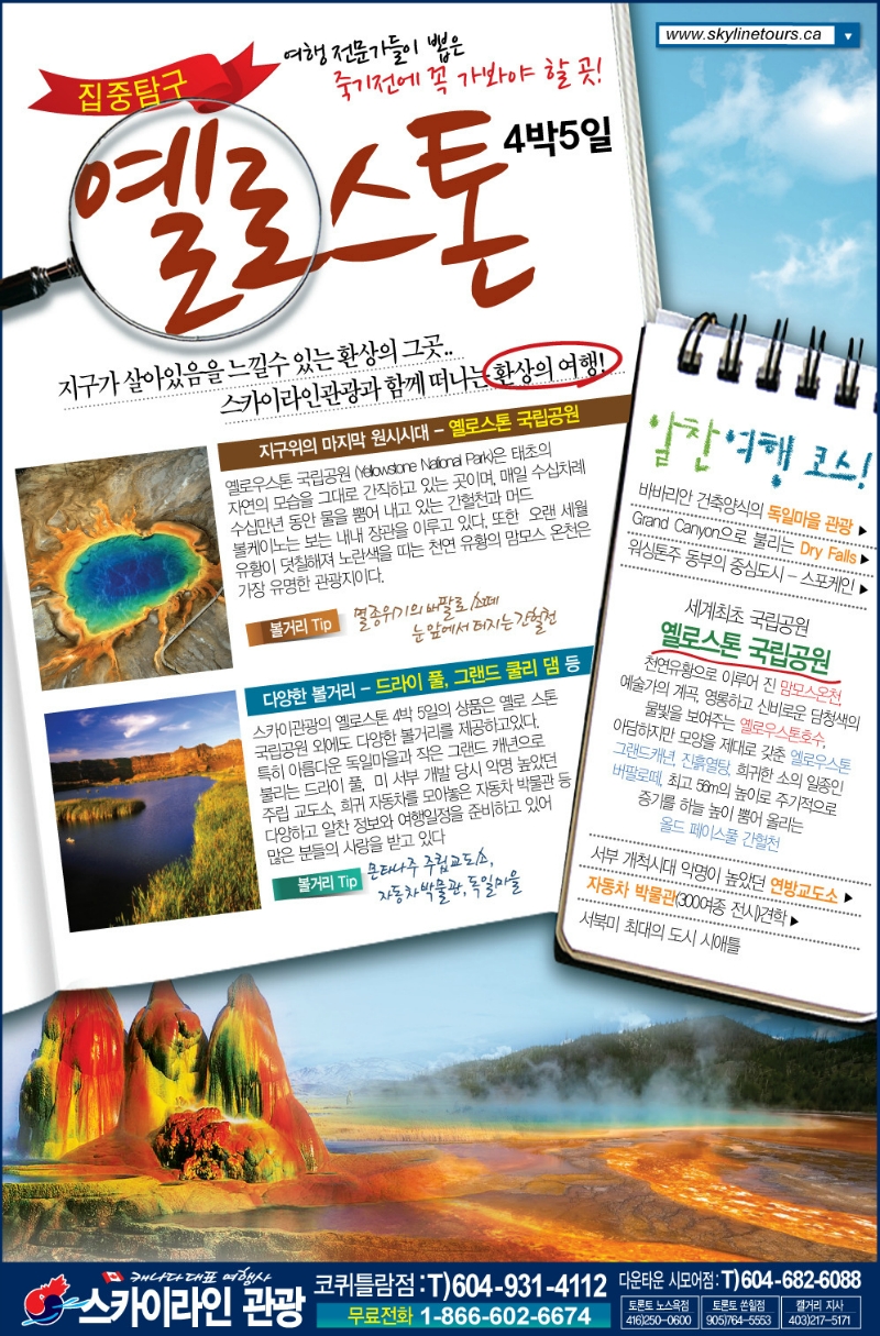 ★★★★★★ 스카이라인 관광★★ 봄여행 특선상품◈옐로스톤4박5일◈옐로스톤+록키 6박7일◈ 미서부코치9박10일/7박8일(항공) ★★★★★★