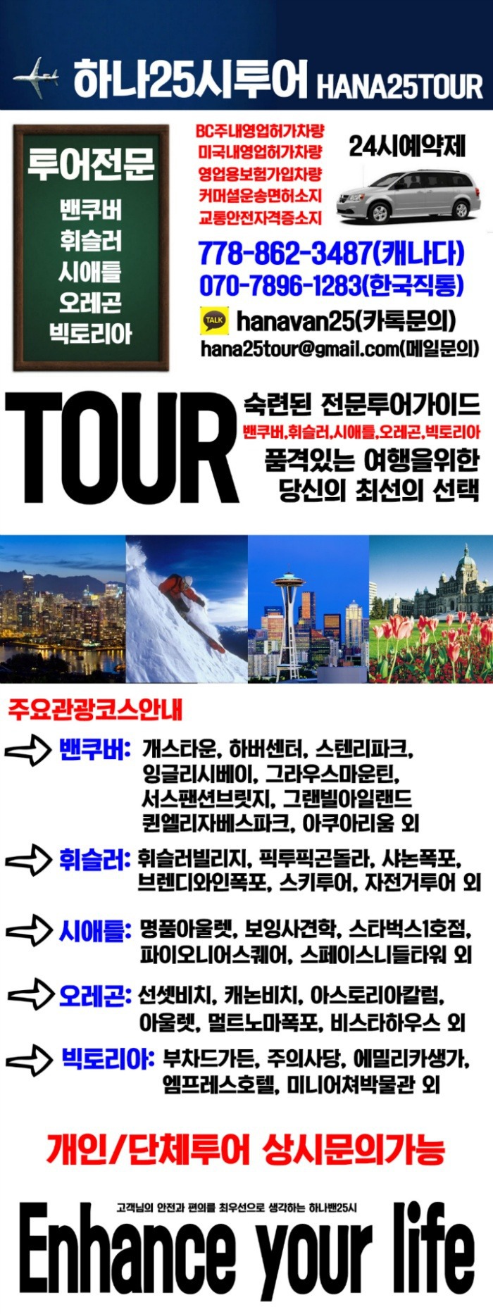 *밴쿠버와 미국 전지역 운행 합니다.(칠리왁,미숀,호프,벨링햄 공항,타코마 공항,포트랜드 공항,LA)