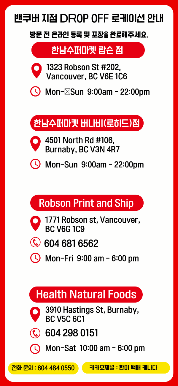 ์ ํ๋ฌธ์ : 604-484-0550 ์ผ๋ก ์ฐ๋ฝ์ฃผ์ธ์.