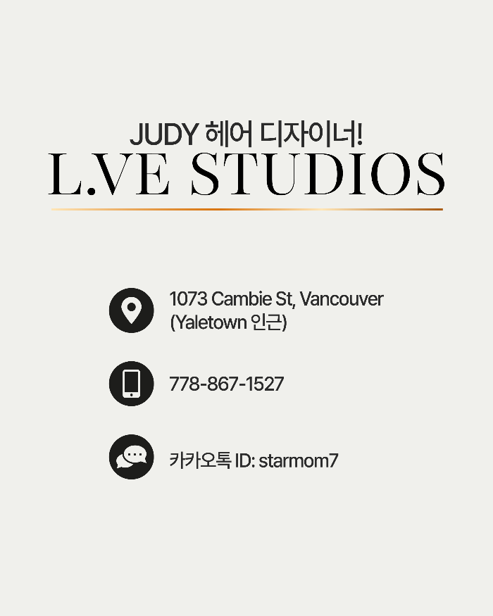 단순한 미용실을 넘어, 고객님 한 분 한 분의 개성을 가장 아름답게 찾아드리는 공간이 되고자 합니다. 밴쿠버의 중심에서 트렌디한 스타일링과 편안한 서비스를 경험해 보세요.