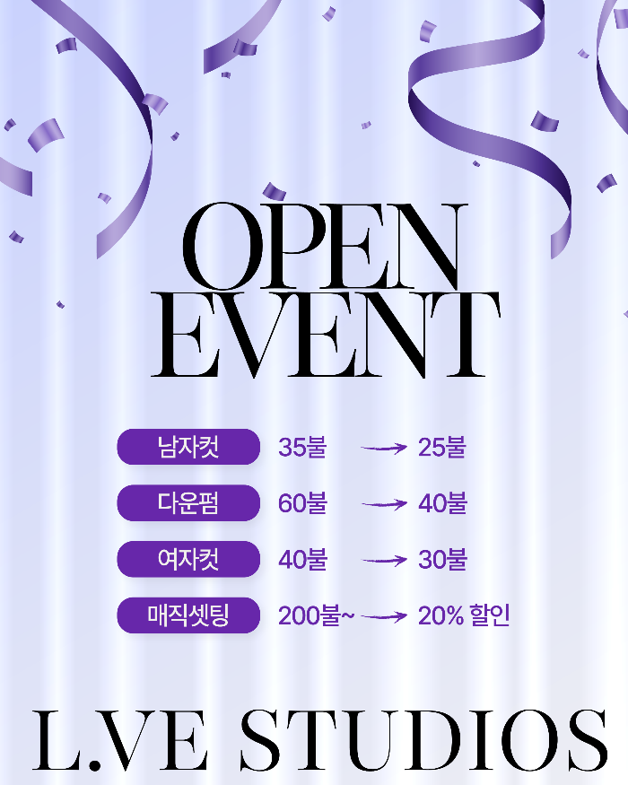 Yaletown 감성 헤어 살롱 오픈 ✨ [ L.VE STUDIOS ] 🎉 오픈 기념 이벤트 (3/1 ~ 3/31)⭐