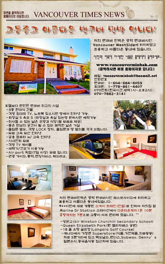 밴쿠버 민박 홈페이지 www.vancouverminbak.com