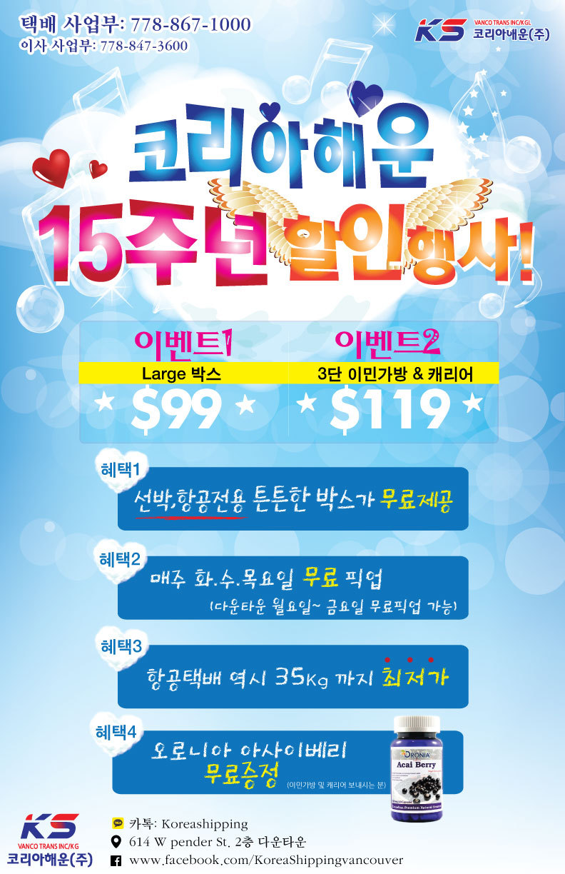♥♡코리아해운, 한국행 큰~박스가 $99!!♡♥