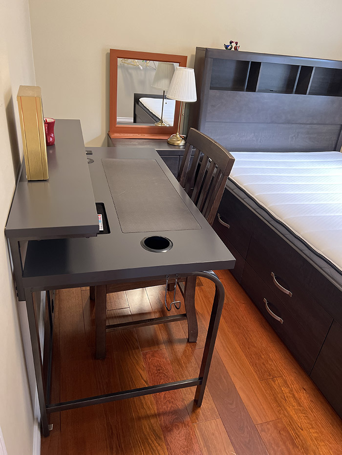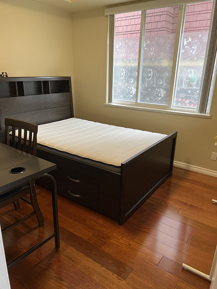 *편안한 메모리얼 메트리스 더블침대 와 포근한침구, 책상, 책장,옷장,개인냉장고,