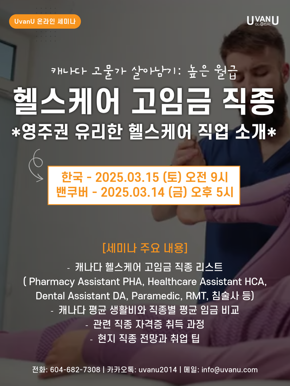 오늘은 캐나다에서 고임금, 안정적인 헬스케어 직업을 희망하는 분들을 위한 내용을 준비했습니다.