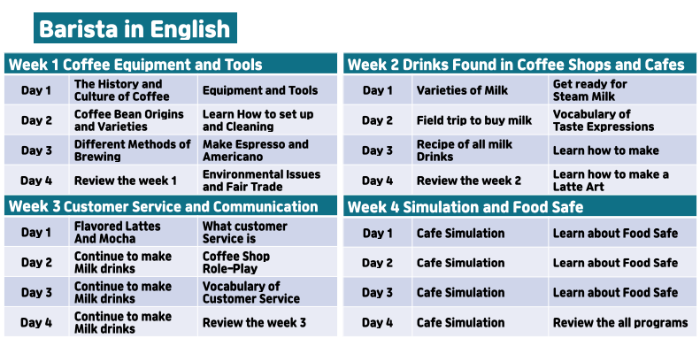 캐나다 내의 카페에서 일할 때 요구되는 고객 서비스 관련 회화 또한 배우게 됩니다.