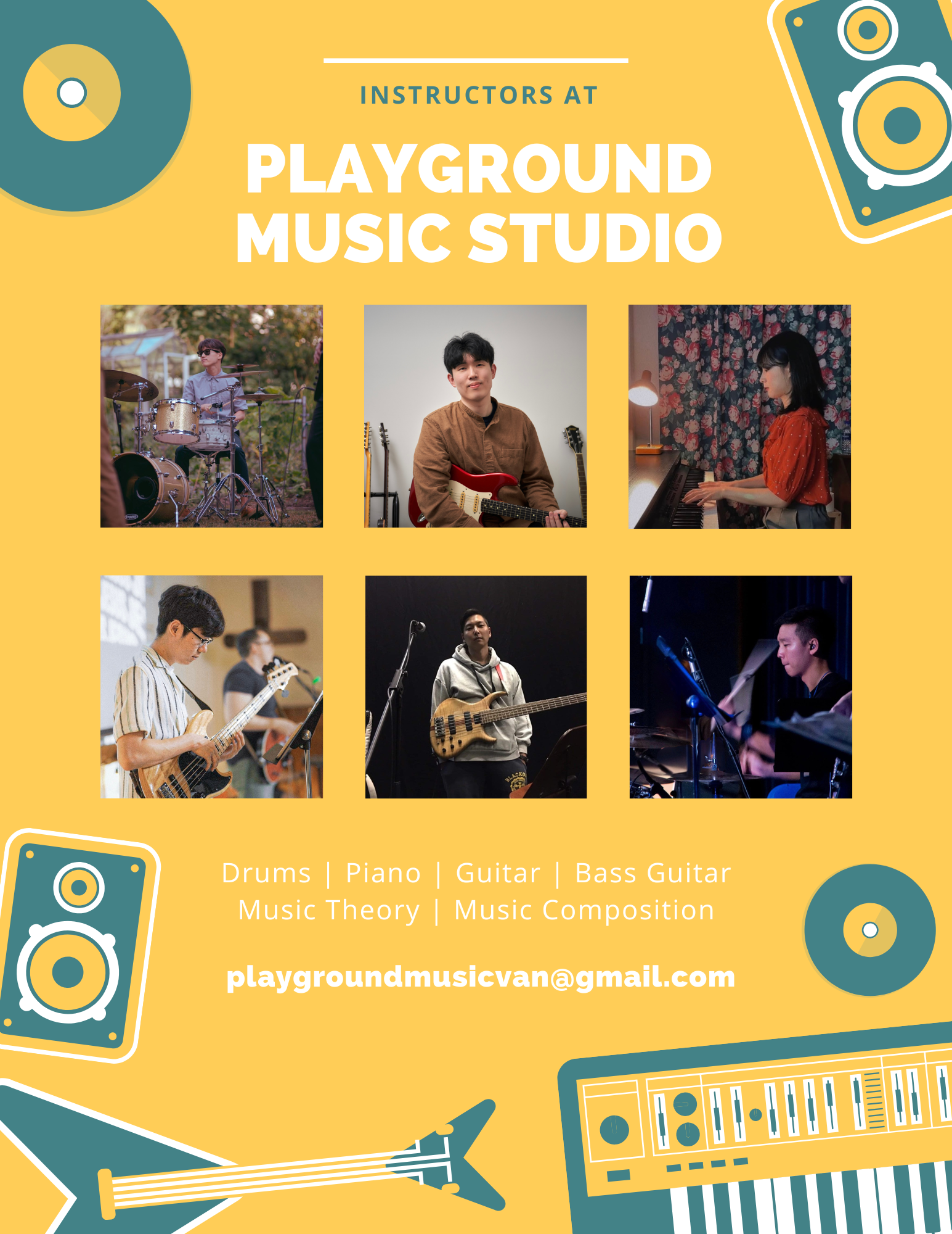 [30분 무료레슨] 밴쿠버 실용음악 전문 교육기관 [Playground Music Studio] 드럼/피아노/기타/베이스/작곡