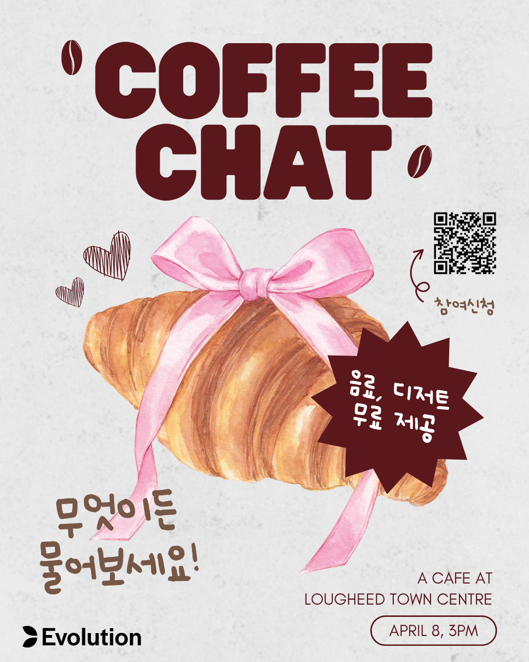 저희 에볼루션이 작은 이벤트로, 카페에서 편하게 이야기 나누고 친구도 만들 수 있는 작은 모임을 준비했어요!