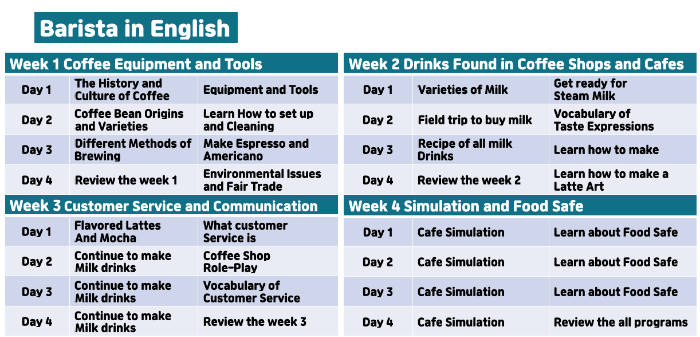 캐나다 내의 카페에서 일할 때 요구되는 고객 서비스 관련 회화 또한 배우게 됩니다.