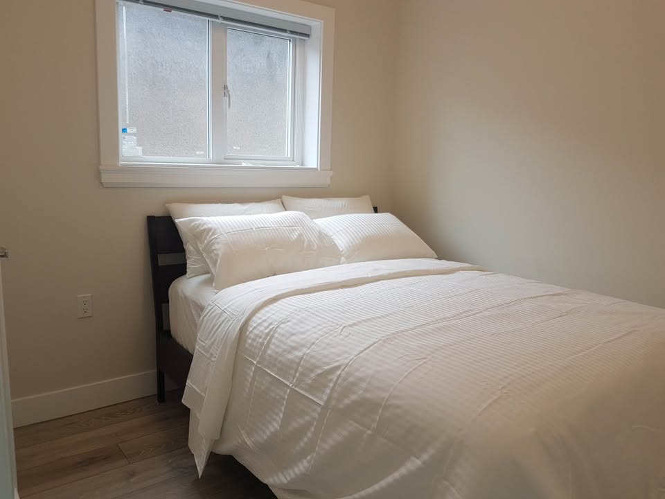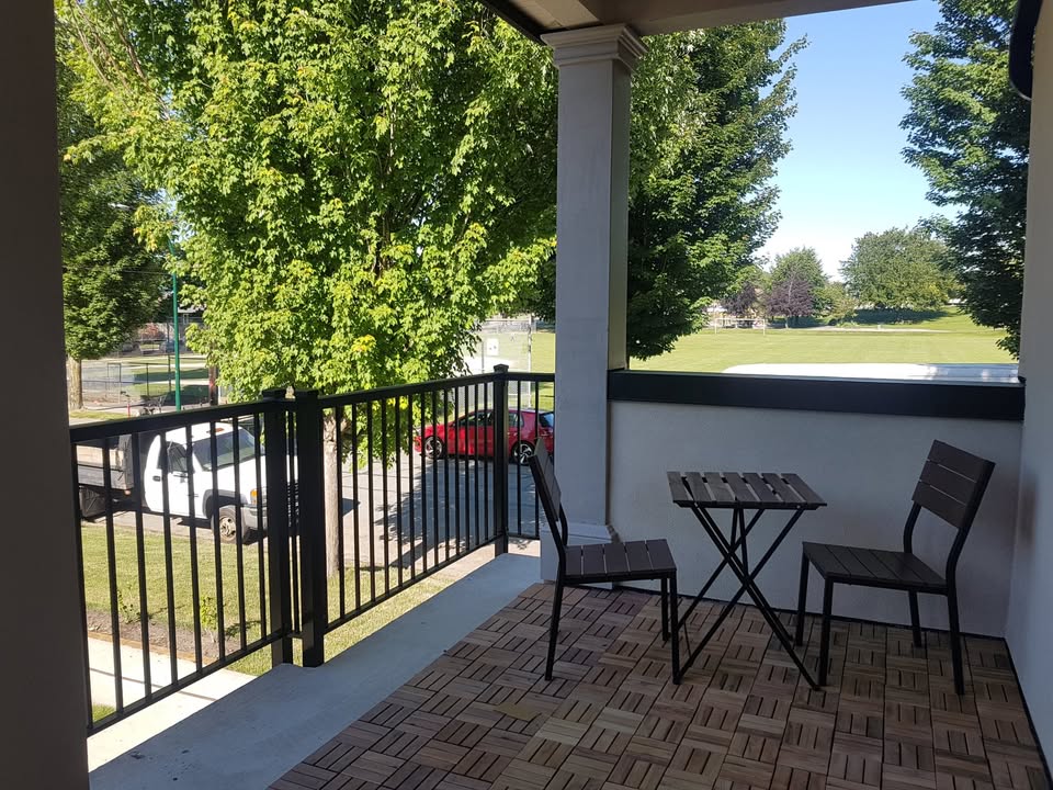 The covered patio is approximately 150 square feet and overlooks Clinton Park directly across the street. It has ample room for an outdoor dining table (included), an outdoor sectional sofa (included), and also a nice nook for a large BBQ. The entire suite has elegant 10-foot ceilings, giving it an airy and generous feel. Radiant heating throughout. The living area is cozy and inviting with large windows facing the patio that lets in lots of natural light. The bedroom can snugly fit a double-size bed with a built-in closet. The kitchen boasts stainless steel gas range and appliances (no dishwasher), and plentiful cabinetry for all your cooking needs. It is also equipped with high efficiency Bosch washer and dryer. The bathroom is furnished with a marble top vanity, colossal mirror, and marble tiles in the walk-in shower. Because this is a corner property, there are lots of street parking available with no restrictions. There is also a 7-11, T&T Supermarket, and many restaurants just minutes away by foot. This suite is perfect for one occupant or a couple with modest possession. If you are active and love spending time outdoors, this is the perfect home for you. Commute: Downtown: 10 mins (car), 22 mins (transit) Richmond: 16 mins (car), 50 mins (transit) Metrotown: 11 mins (car), 30 mins (transit) 1-year lease Unfurnished, except for outdoor sectional and outdoor dining table. No pets No smoking inside the suite Utilities not included (wifi not included. gas and hydro: approx. $50-80/month) 1/2 month deposit required