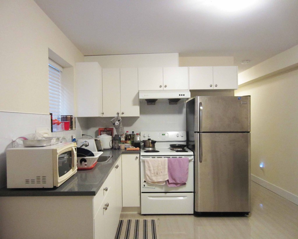 Shared kitchen, washroom and coin laundry room