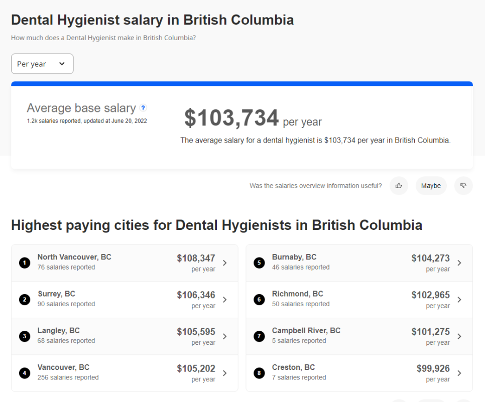 ์์ ์๋ฃ์์์๊ฐ์ด 2022๋ ๊ธฐ์ค BC ์ฃผ์ ์น๊ธฐ๊ณต์ฌ์ ํ๊ท ์ฐ๋ด์ด $ 97,180 CAD์ด๊ณ ์น๊ณผ ๋ณด์กฐ์ฌ๊ฐ $ 89,981 CAD์ธ๋ฐ, ์น์์์ฌ๋ ๊ณ ์ฐ๋ด ์ง๊ตฐ์์ ์ ์ ์์ต๋๋ค.