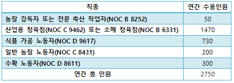 μ§μν μ μλ μκ²©μ΄ μλ μ§μ μ NOC(National Occupational Classification) μ½λμ λ°λΌ λΆλ₯λ©λλ€.