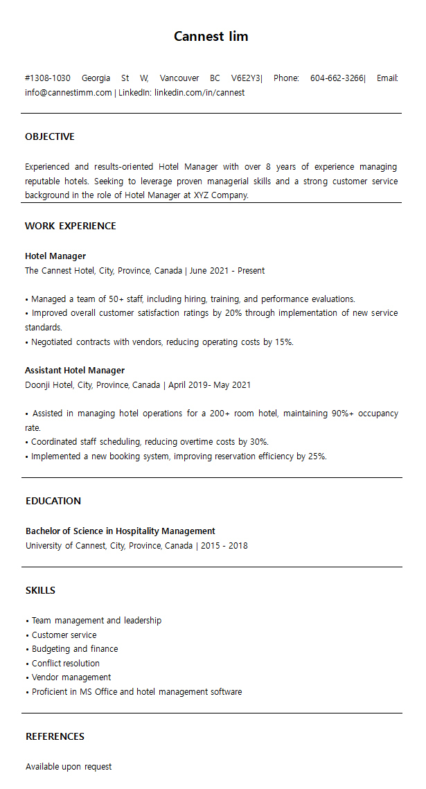 νμ§λ§ μΌλ°μ μΌλ‘ μΊλλ€ μ΄λ ₯μμλ μ°Έμ‘°μΈ μ 보λ₯Ό λ£μ§ μμΌλ©°, λμ βReferences available upon requestβλΌκ³ νκΈ°νλ νΈμ λλ€. λ¬Όλ‘ νμ¬μμ μμ²νλ κ²½μ°, μΆμ²μΈκ³Ό μ§μ μν΅μ΄ νμν μ μμ΅λλ€.