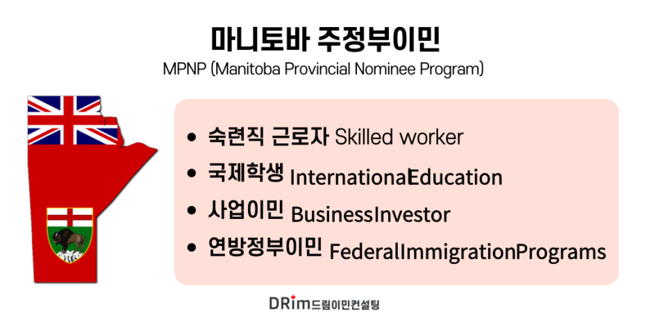 매니토바 주정부이민 - MPNP (Manitoba Provincial Nominee Program) 은 크게 4가지 스트림으로 구분되어 있고, 다른 주의 주정부이민과 마찬가지로Manitoba 주로 이민하고 캐나다 영주권을 취득 할 수 있습니다.