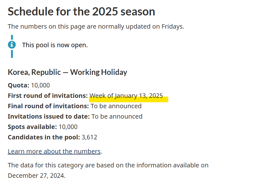 워홀은 올해 10,000명으로 쿼터 수가 배정되었습니다. 첫 추첨은 2025년 1월 13일에 이루어질 것 같습니다.