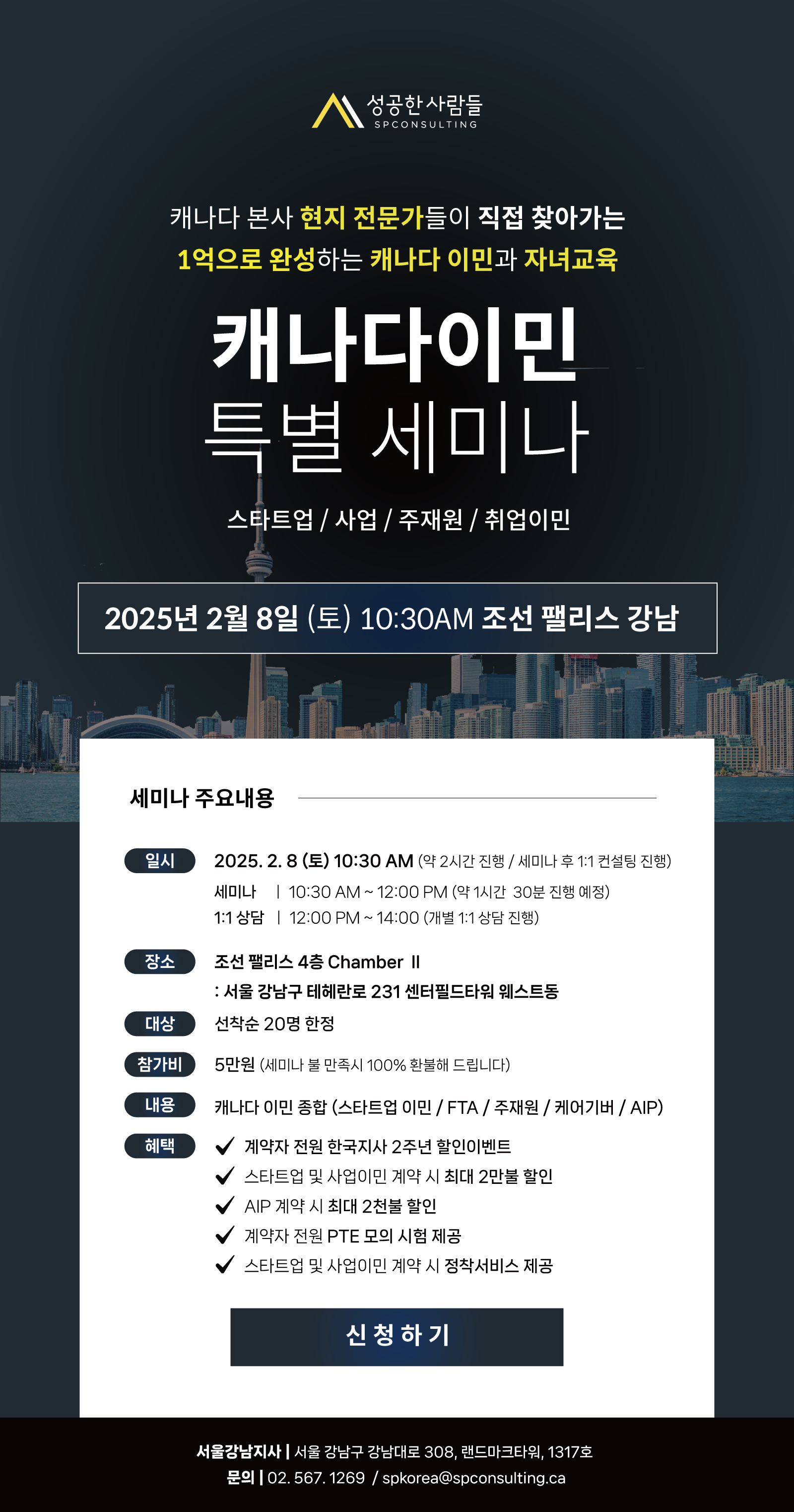 ☎️문의 : 전화 : 02 567 1269 / 이메일 : spkorea@spconsulting.ca