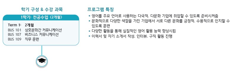 프로그램이 벤쿠버 캠퍼스만큼 다양하진 않지만 초반 영어실력을 키우고, 스페셜 프로그램인