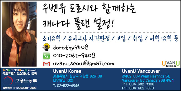 캐나다 어학연수 관련 궁금하신 사항은 아래 네임텍 또는 카톡으로 문의주세요~!