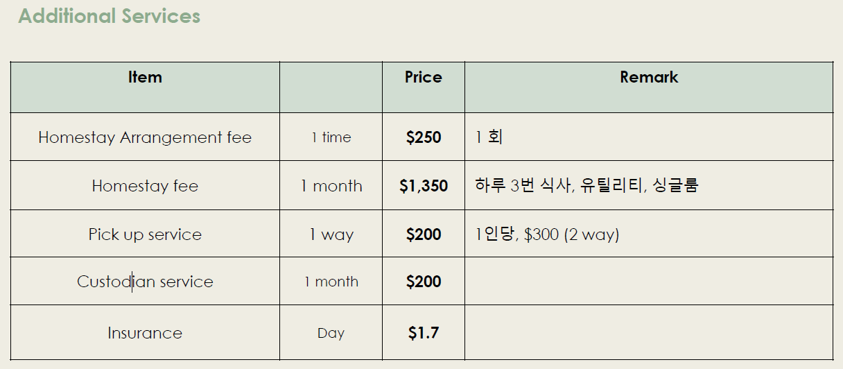 있으며, 홈스테이 이외에도 2곳의 기숙사를