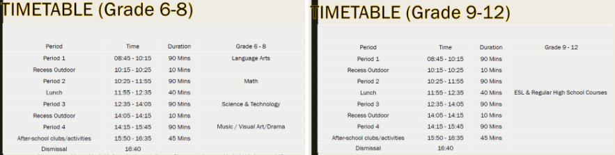 하루 일정 (월~금) : 오전 8:45~오후 4:35