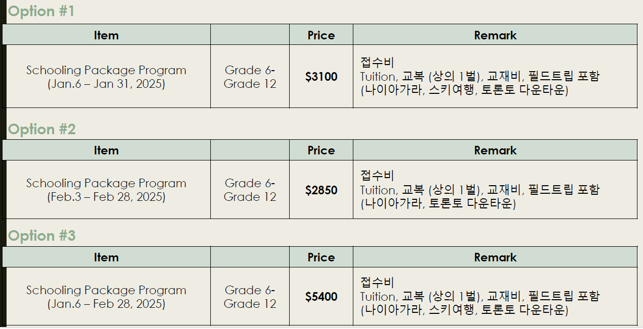 스키 트립, CN 타워 방문 등) 포함 되어있어
