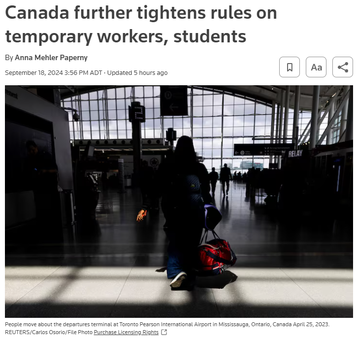 24년 9월18일, 캐나다 이민국은 캐나다
